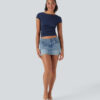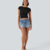 - Four-way stretch fabric offers ease of movement and durable wearability.