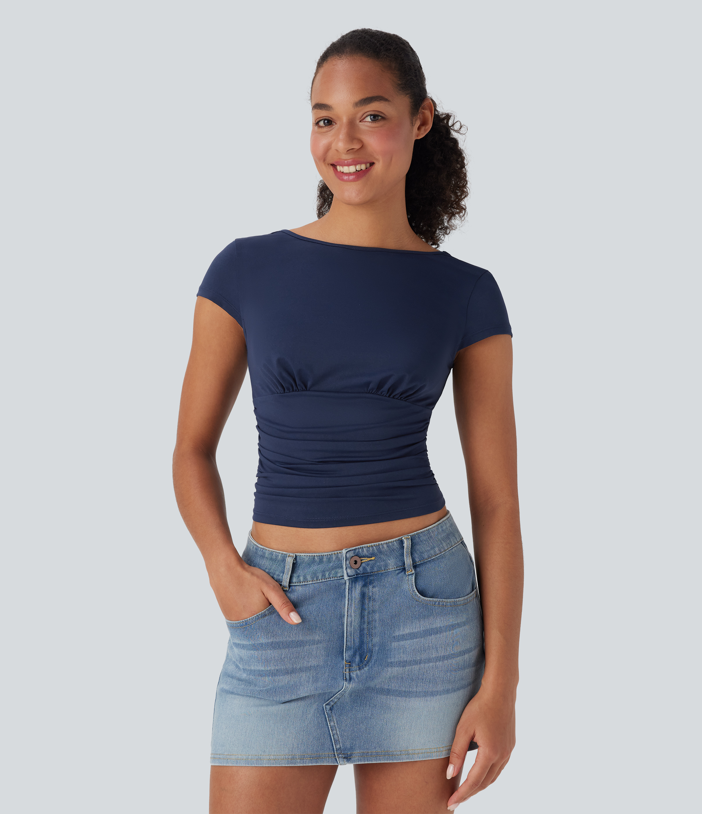 - Designed with ruched tailoring for a textured look.