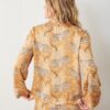 - Top fits slightly boxy, hits at the natural waist. Sleeves are loose and comfy.