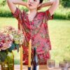 - Fit: Button-down top that’s roomy, chic, and falls gorgeously on the body. Mid-rise shorts feature an elastic waistband, adjustable drawstring, and 2 ¼” inseam. Shorts have pockets.