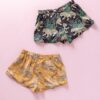 - Pull-on style shorts with slightly curved edges.