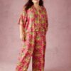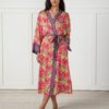 - Printed robe is 48″ long measured on a small size and includes matching belt and internal tie closure.