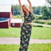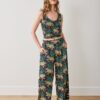 - Fit: Ruffle-trimmed, slightly cropped tank with built-in elastic for a comfortable stretchy fit. Wide-leg pants with oversized, roomy silhouette and higher rise featuring pull-on waistband and pockets. 25.5″ inseam.