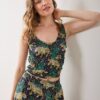 Bagheera is back and iconic for summer. This leopard print pajama set in ink features our iconic jungle cat, now in a satin ruffle tank and pant set made for lounging. These satin leopard pjs are equal parts playful and polished—the ultimate women’s pajama set for warm nights. Find more in our , , and collections.