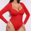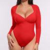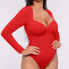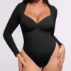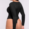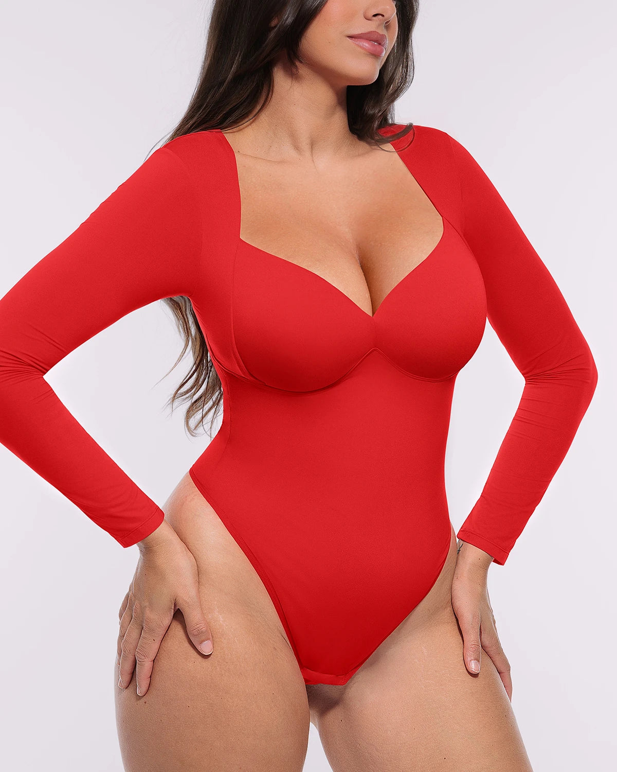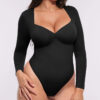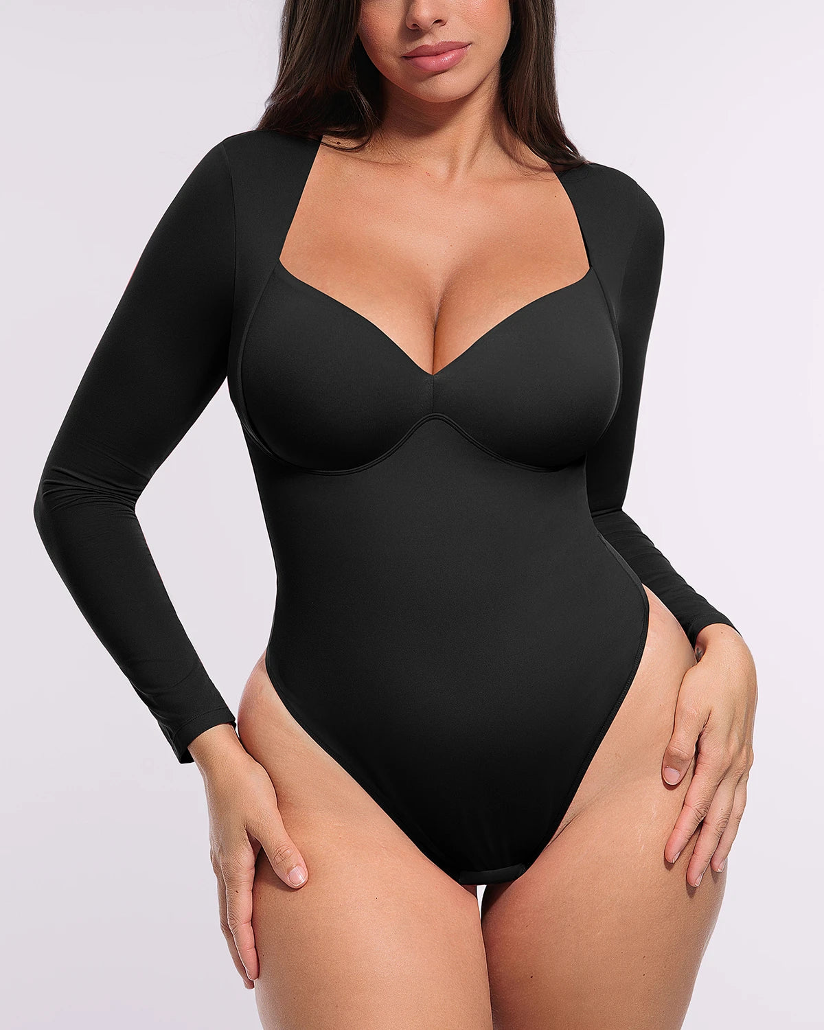 The Bare Essentials™ AirSlim® Long Sleeve Thong Bodysuit lifts, slims, and smooths with molded bust support, waist-defining panels, and a seamless thong back for invisible wear. Cloud-soft fabric keeps you comfy, while the easy-snap closure adds convenience. Confidence made simple.