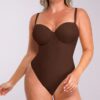 Introducing Bare Essentials™ AirSlim® Strapless Thong Bodysuit. Its adjustable convertible straps allow styling versatility, with free transparent straps included. The underwire and molded cups offer lift and sculpting, while the double-layer abdominal panel delivers targeted compression for a flawless silhouette.