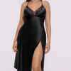 Bare Essentials™ Satin Lace Pajama Dress – Designed to highlight your curves with a flattering V-neck, delicate lace accents, and built-in bust support. The elegant high slit and silky satin drape beautifully, making you feel effortlessly sensual and comfortable all night long.
