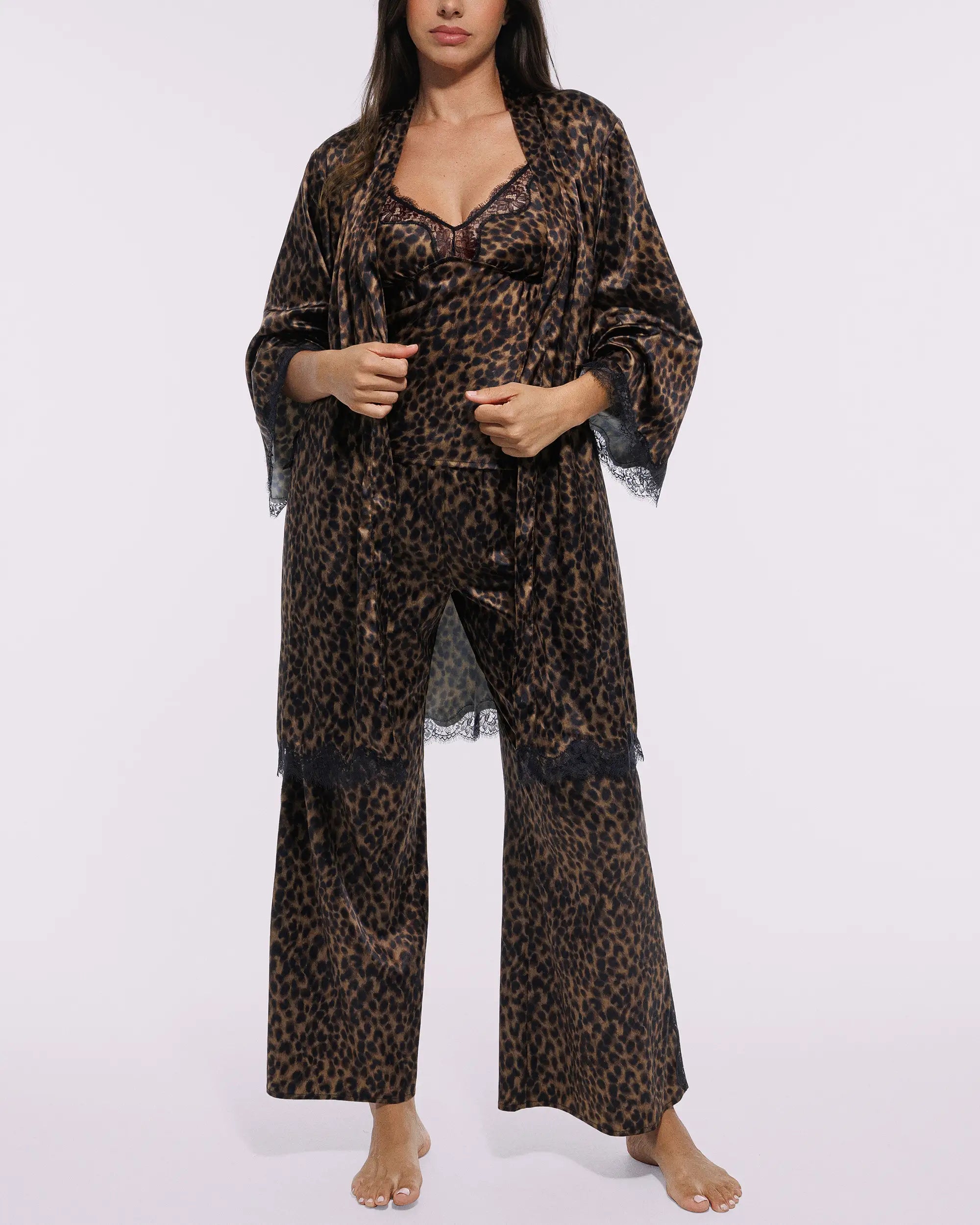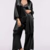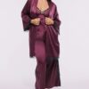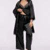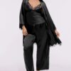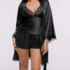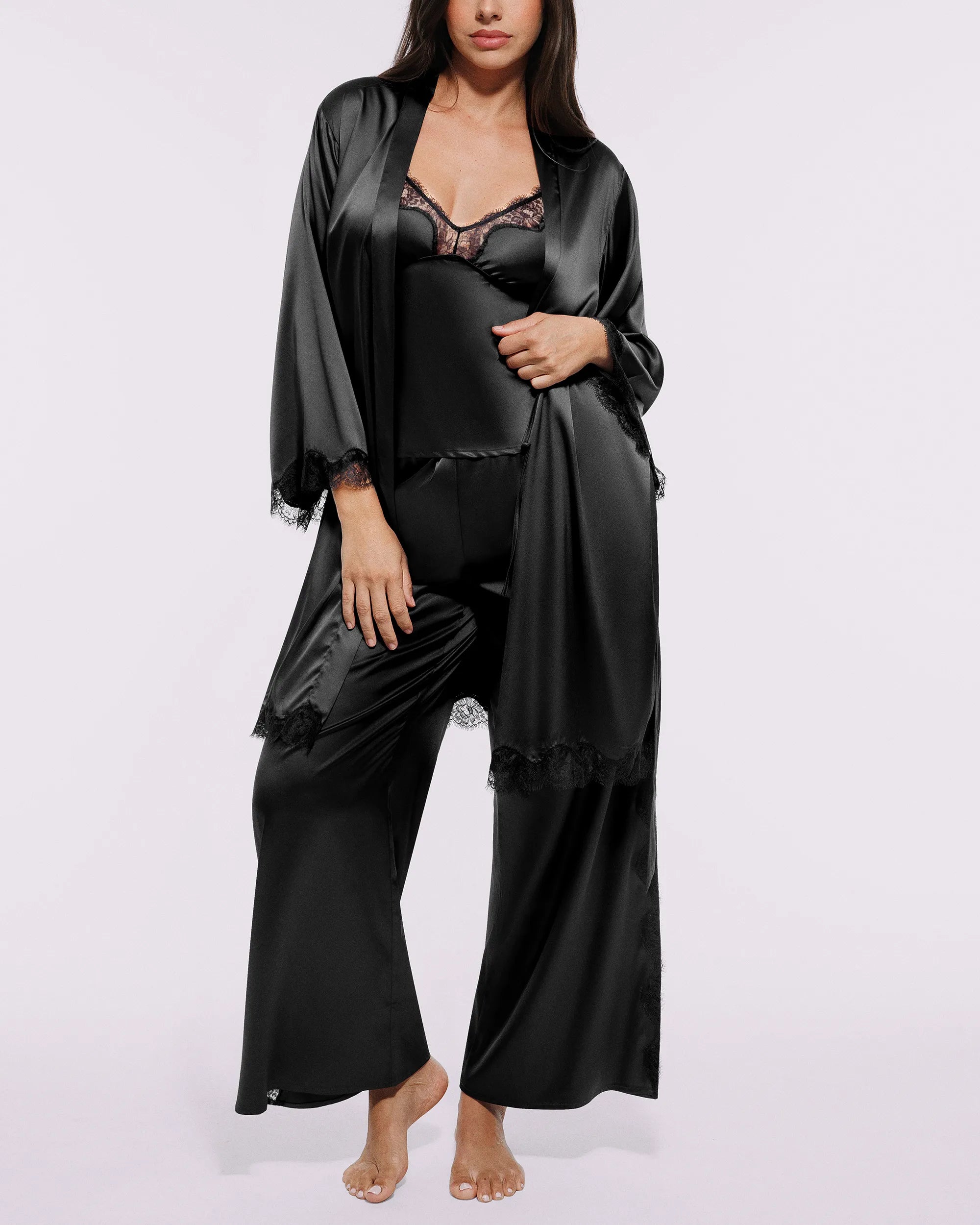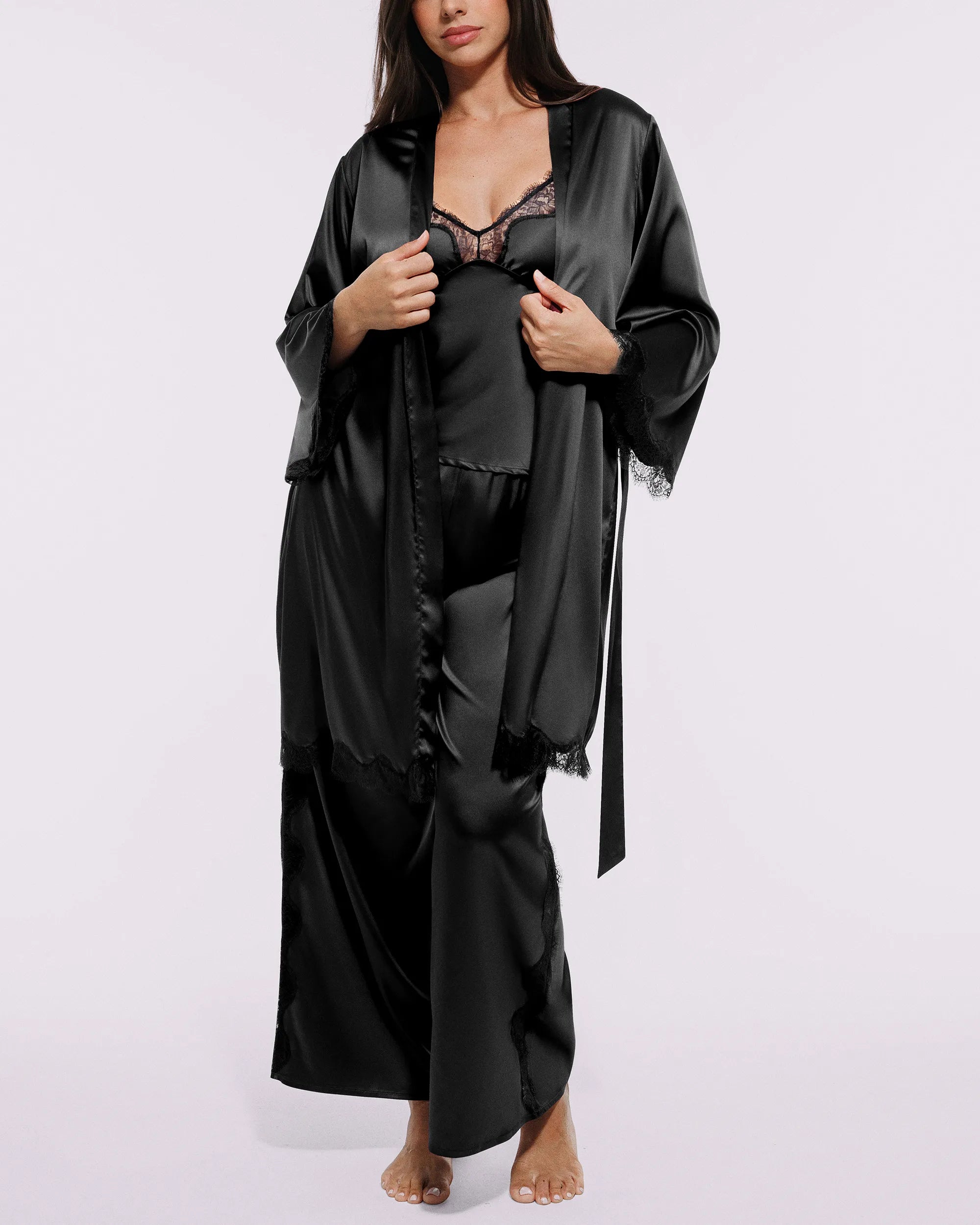 Indulge in effortless elegance with our Bare Essentials™ Satin Lace Pajama Robe. The silky fabric glides over skin with a flattering V-neck and romantic lace details. Features an adjustable self-tie belt, perfect for layering over sleepwear.