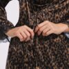 • Delicate black lace trims add a romantic touch at cuffs and hem.
