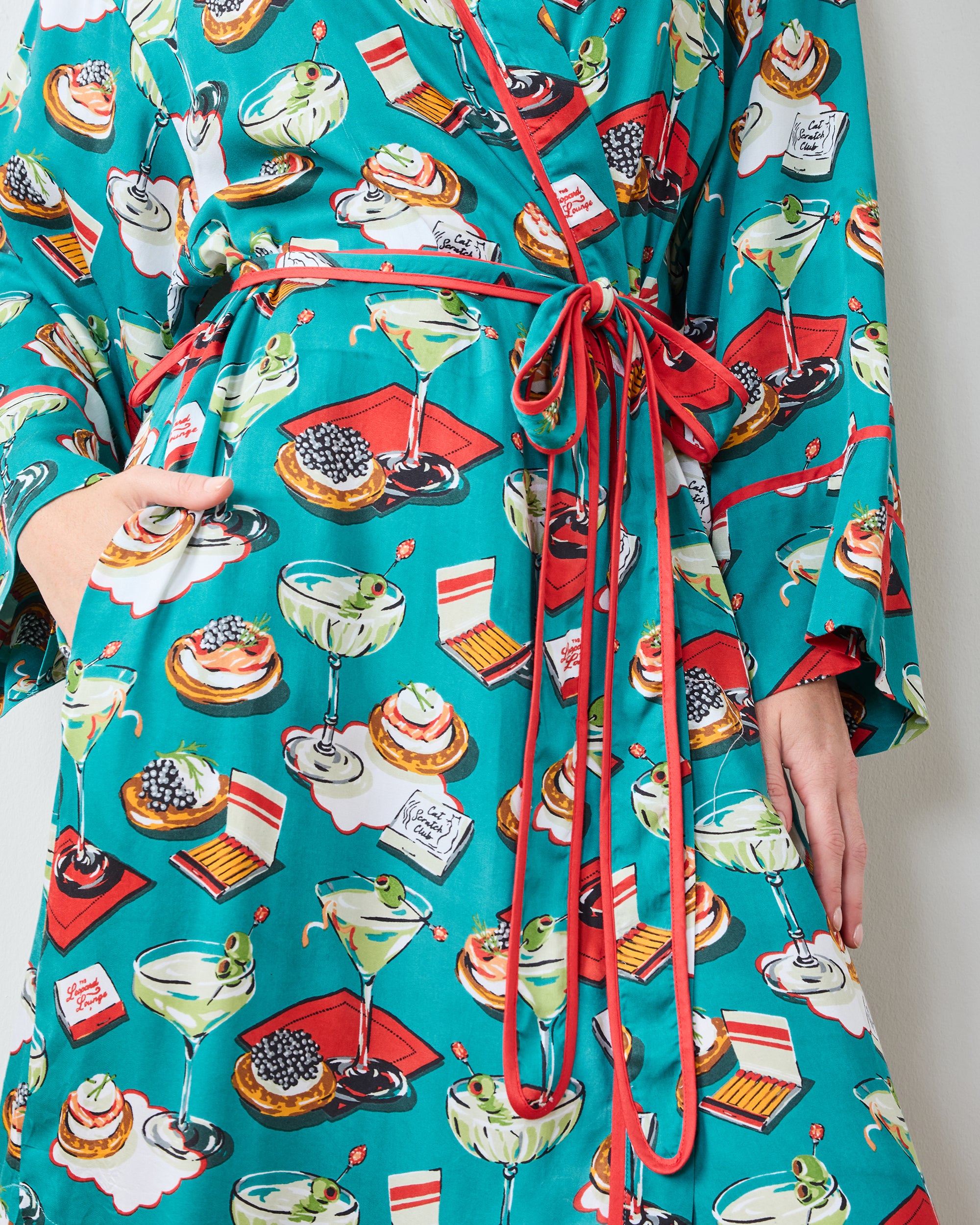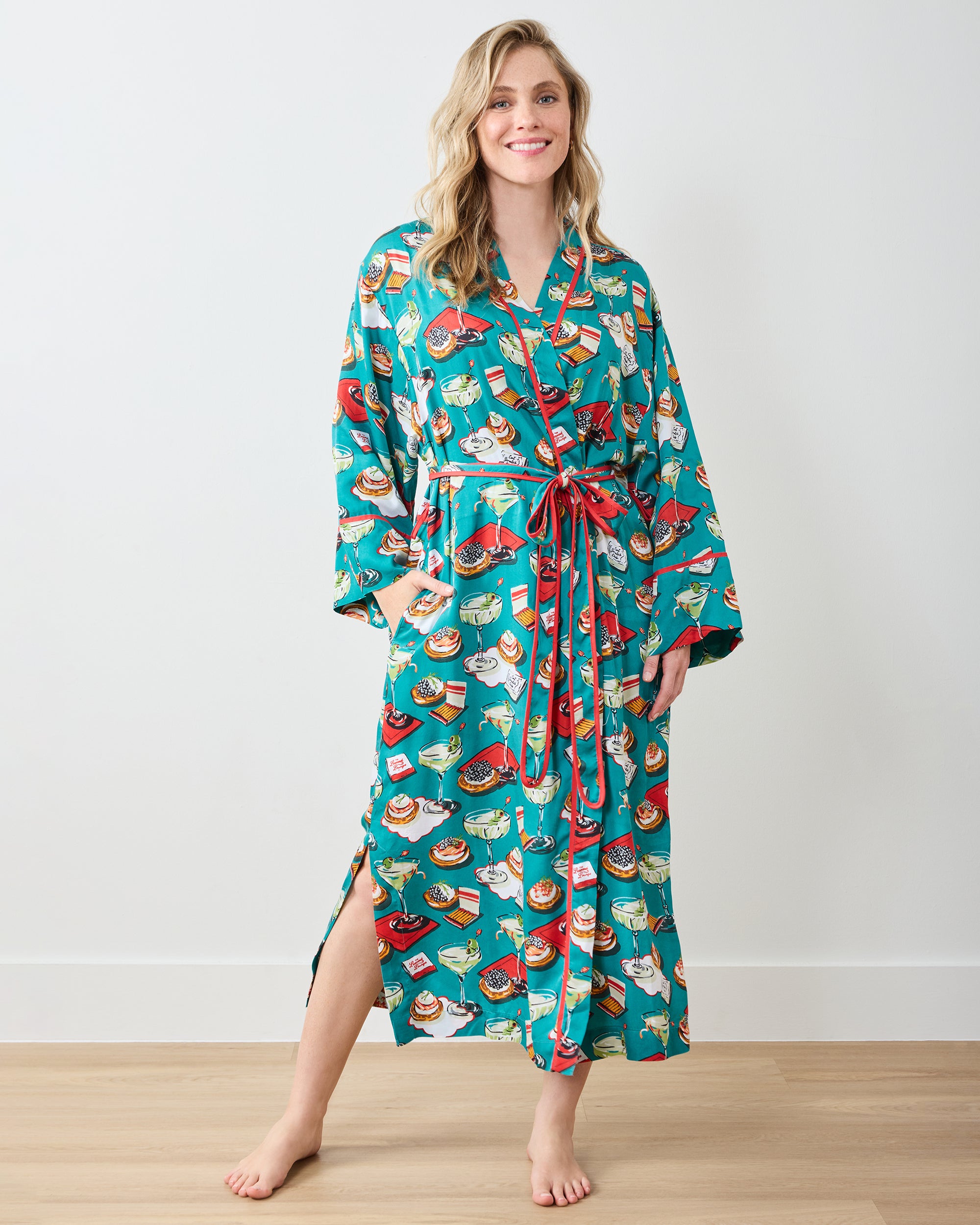 Blinis & Martinis – Eco Satin Robe – Mid Century Blue