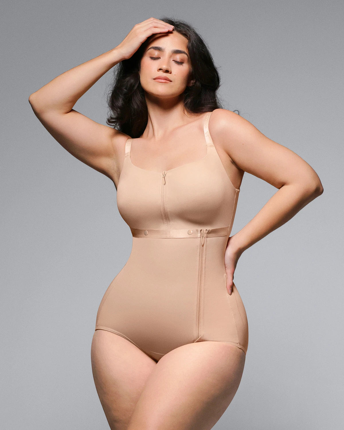 • Built-in waist cincher with adjustable hook-and-eye closure for optimal shaping.