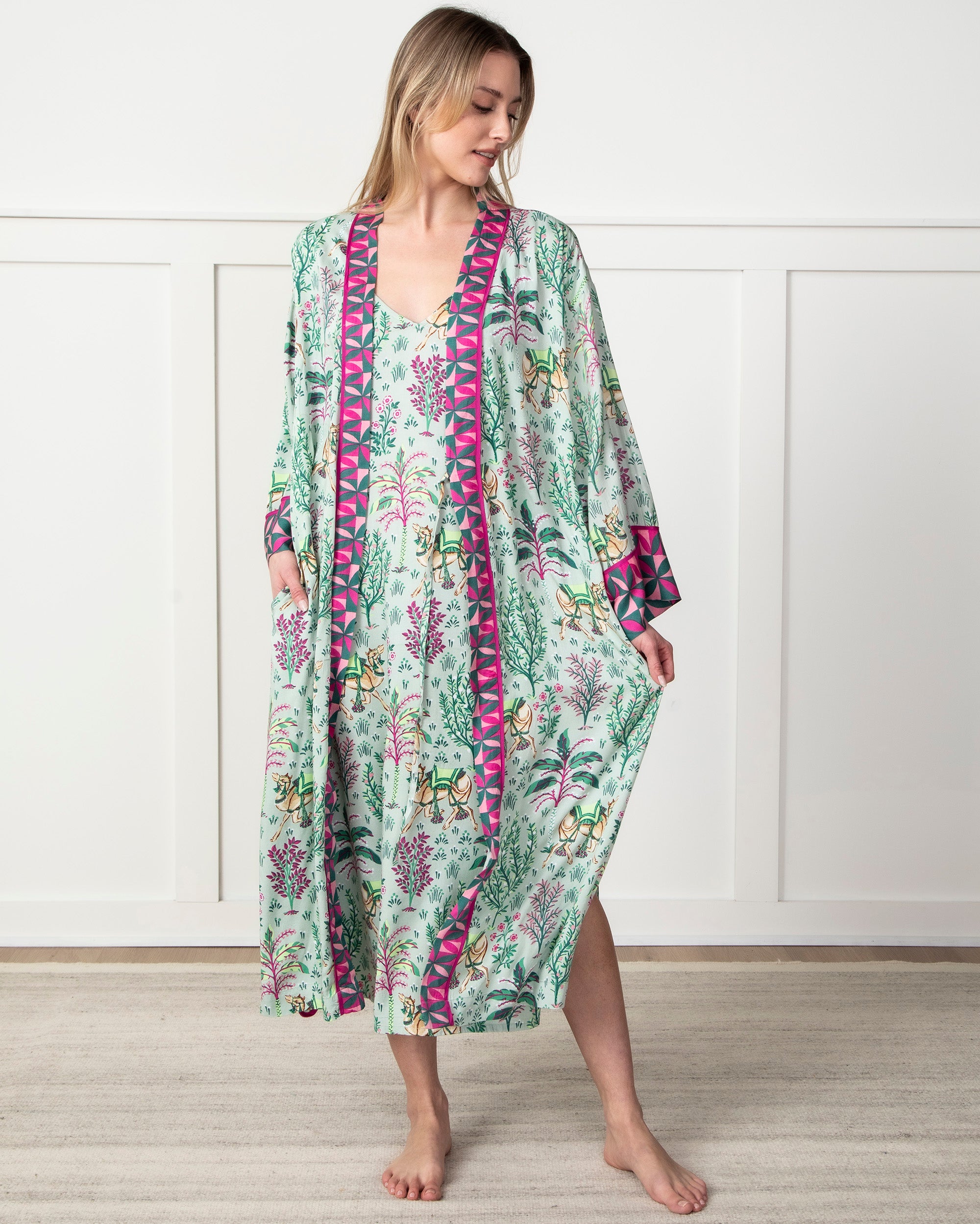 - The Pattern: Inspired by the botanical world, the Camel’s Courtyard print is designed to feel like a natural oasis. The decorative vines that surround the confident and powerful camel reflect a secret garden that’s both captivating and calming, providing its animal occupants with a much-needed respite. The desert-dwelling print encourages you to sit under the canopy of the palm trees and cacti, to close your eyes and deeply breathe in the floral scents surrounding you.
