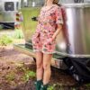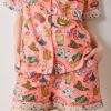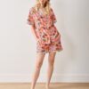 This camping print short pajama set in coral is a nostalgic nod to classic summer adventures, complete with playful details and contrast map print trim. Made from breathable organic cotton, this women’s poplin pj set with pockets is the go-to summer sleepwear for warm nights, with cute short pjs and a relaxed-fit top. Explore more , , and .