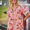 This camping print short pajama set in coral is a nostalgic nod to classic summer adventures, complete with playful details and contrast map print trim. Made from breathable organic cotton, this women’s poplin pj set with pockets is the go-to summer sleepwear for warm nights, with cute short pjs and a relaxed-fit top. Explore more , , and .