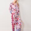 Pop the cork on bedtime luxury with this champagne print sleepwear in dreamy Lavender Spritz. Our Rittenhouse satin lounge set features vintage-inspired caviar tins and bubbly flutes on silky Eco Satin. The relaxed-fit top and high-rise wide-leg pants include pockets for midnight champagne moments. Perfect for celebrating quiet victories or gift-giving. Explore our , , and for more luxe pieces.