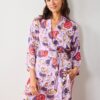 Toast to bedtime luxury in this champagne print sleepwear. Our satin Wrap Set features retro caviar tins and bubbly flutes on silky Eco Satin in sophisticated Lavender Spritz. The adjustable wrap top and wide-leg pants with pockets deliver relaxed comfort. Perfect for celebrating quiet evenings or gifting someone with exquisite taste. Discover more in our collection, , and .