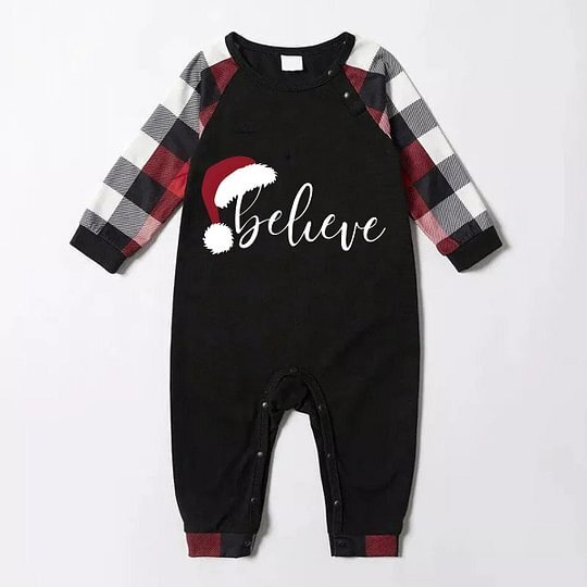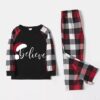 Christmas Hat and Red & Black & White Plaid Pants Family Matching Pajamas Set With Dog Bandana