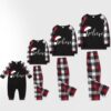 Christmas Hat and Red & Black & White Plaid Pants Family Matching Pajamas Set With Dog Bandana