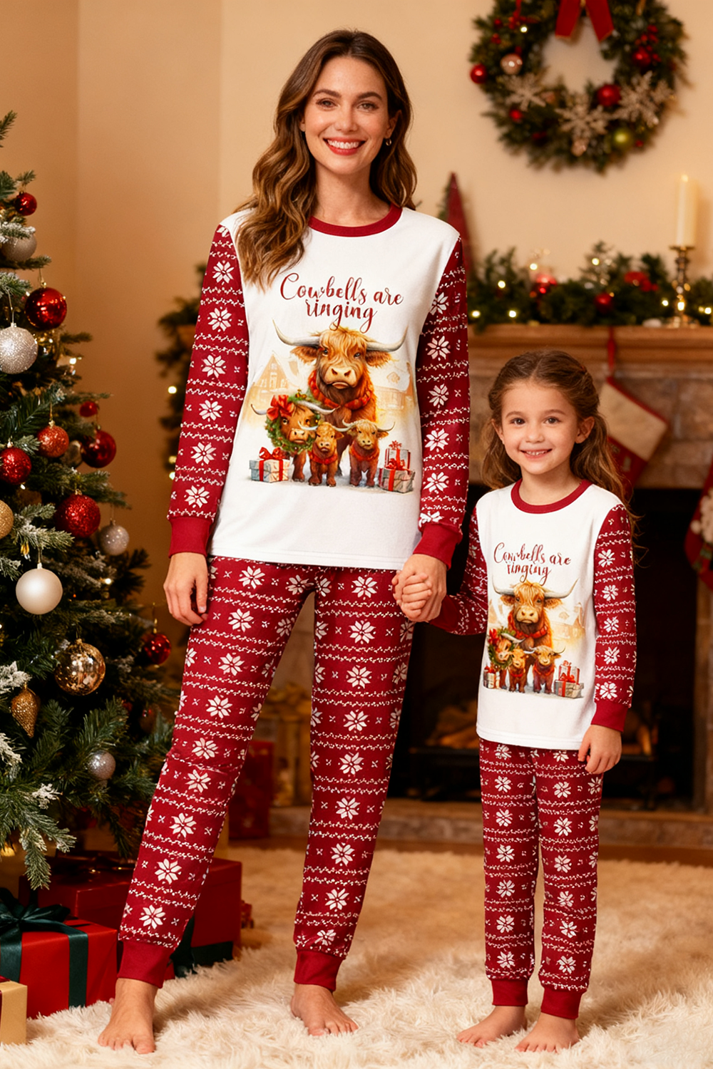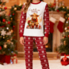 A mother and daughter, glowing with joy in matching festive pajamas, share a tender moment before their beautifully adorned Christmas tree, surrounded by the warmth of holiday decorations. No one can resist the warmth and joy of Christmas and the New Year. Let the whole family wear these special Christmas-themed pajamas together!