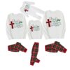 Christmas Letter Print Patterned White Long Sleeve with White&Red&Green Plaid Pants Family Matching Pajamas