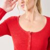 - Sizing: Shrunken style that fits snugly to the body. Body length skims the top of our signature pajama pants. Scoop neck and wide cuff detail.