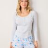 Crafted from a soft waffle knit, this long-sleeve henley top is the perfect match for our pajama pants. With a classic snap closure and a snug fit, this pajama top is a cozy essential.