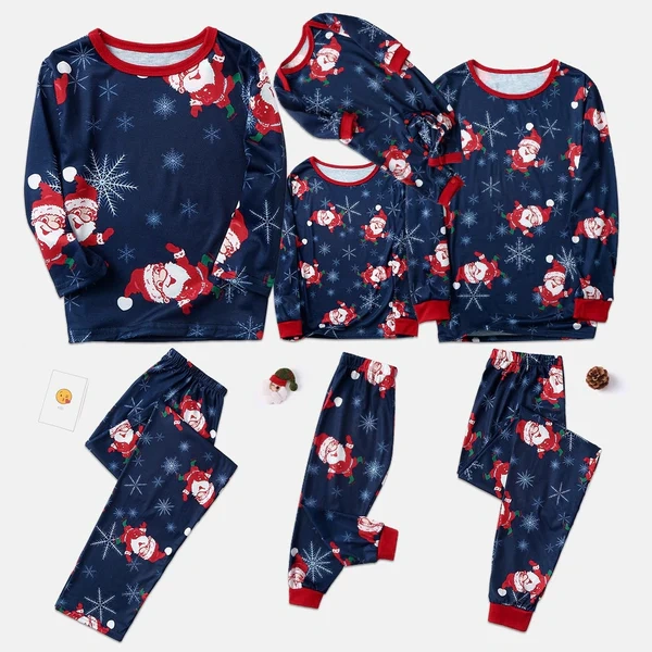 Dark Blue Santa Claus Pattern Christmas Family Matching Pajama Set