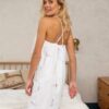 - Adjustable straps crossover at back and elastic at center back provides some give.