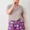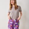 Step into comfort in our Halloween House Cats boyfriend boxer. Featuring cats dressed in their Halloween best on rich Purple Tonic, these sleep shorts are crafted from breathable, organic cotton. These cotton lounge boxers sit comfortably at your waist, the perfect cotton sleep shorts for autumn lounging. Browse our pajama shorts and pajamas for more charming seasonal styles.
