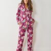 Bundle up with our Holiday Hens flannel pajama set. This Burgundy flannel sleep set features cheerful hens sporting festive hats and scarves on lightweight organic flannel. The chic button-down top pairs with comfortable mid-rise pants, complete with pockets for your essentials. A delightful flannel lounge set for snowy weekend mornings. Explore our , , and .