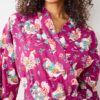 Wrap yourself in holiday magic with our Holiday Hens winter flannel robe in Burgundy. This festive sleep robe features charming hens in holiday attire on lightweight organic flannel. With elegant full-length coverage, deep pockets, and a matching belt for a cinched silhouette, it’s the perfect holiday flannel robe for chilly mornings by the fireplace. Explore our , , and .
