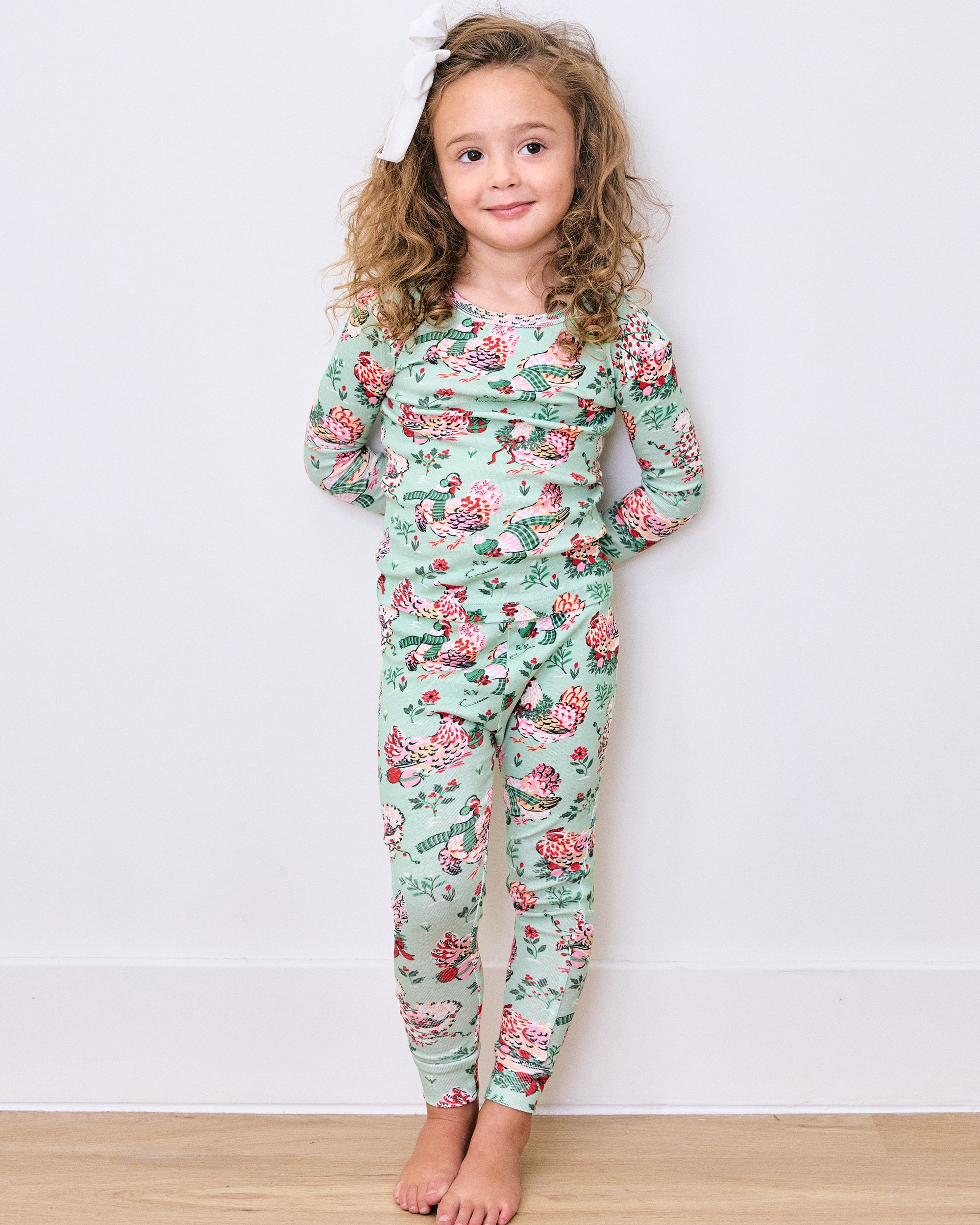 Holiday Hens – Kids Snug Fit PJ Set – Sage