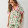 Deck the halls with feathered friends. Our Holiday Hens short pajama set in Sage features whimsical hens sporting scarves and earmuffs on breathable organic cotton. This festive holiday pajama set offers effortless comfort with a relaxed button-down top and comfortable sleep shorts with pockets. Perfect cotton PJ set for cozy holiday mornings. Shop our , , and for more hand-illustrated prints.