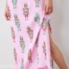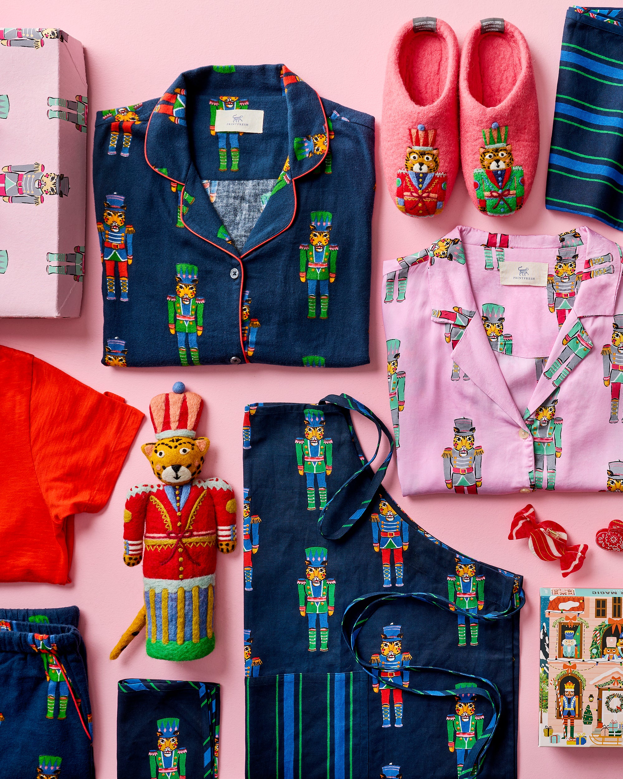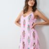 Transform bedtime into a holiday celebration with our Leopard Nutcrackers midi-length satin sleep dress. This festive sleepwear dress pairs whimsical nutcrackers with bold leopard faces on thermoregulating Eco Satin. The holiday satin nightie features adjustable straps with a stretchy smocked back and an elegant side slit for easy movement. Made for magical December nights. Explore our , , and for more hand-drawn prints.