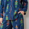 Wrap yourself in holiday magic with our Leopard Nutcrackers navy flannel PJ set. This flannel sleepwear pairs majestic leopards with cheerful nutcrackers on cozy organic flannel. The button-down top offers an effortlessly roomy fit, while the long pajama pants feature adjustable comfort and pockets. Perfect holiday PJ set for festive mornings and cozy winter nights. Discover more joyful prints in , , and .