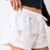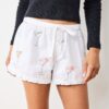 Indulge in cocktail-inspired comfort with our Martini Hour ruffle pajama shorts in crisp Cloud. These white sleep shorts feature embroidered martini motifs celebrating every cocktail mood. Crafted from breathable organic cotton with a charming ruffle hem, they’re perfect for cozy evenings with a nightcap. Please note, this style does not include pockets. Explore our and for more cotton lounge shorts.