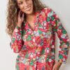 - Sizing: Button-down top with relaxed fit that’s roomy and chic. Mid-rise pants with elastic waistband, adjustable drawstring, and 28″ inseam.