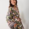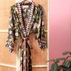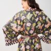 Step into an enchanted evening with our Midnight Flutter printed robe. Colorful moths flutter through midnight gardens on Slate-hued, breathable Eco Satin, creating a nature-inspired dreamscape perfect for stargazing. This wrap-style satin robe features a secure double-tie design, roomy pockets, and full-length coverage. Layer over your favorite pajamas for elegant morning rituals. Explore our and collections for more magical prints.