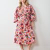 Steep yourself in holiday magic with our Mulled Wine cotton robe in Pink Tinsel. Glass mugs, cranberries, and spices dance across breathable organic cotton in this festive hand-drawn print. Our holiday robe features an elegant floor-grazing length, deep pockets, and a matching belt for a custom silhouette. Perfect cotton sleepwear layer for holiday breakfast prep. Explore our and for more seasonal delights.