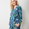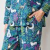 - Sizing: Button-down top with a relaxed fit that’s roomy and chic. Mid-rise pants featuring an elastic waistband, adjustable drawstring, pockets, and 28″ inseam.