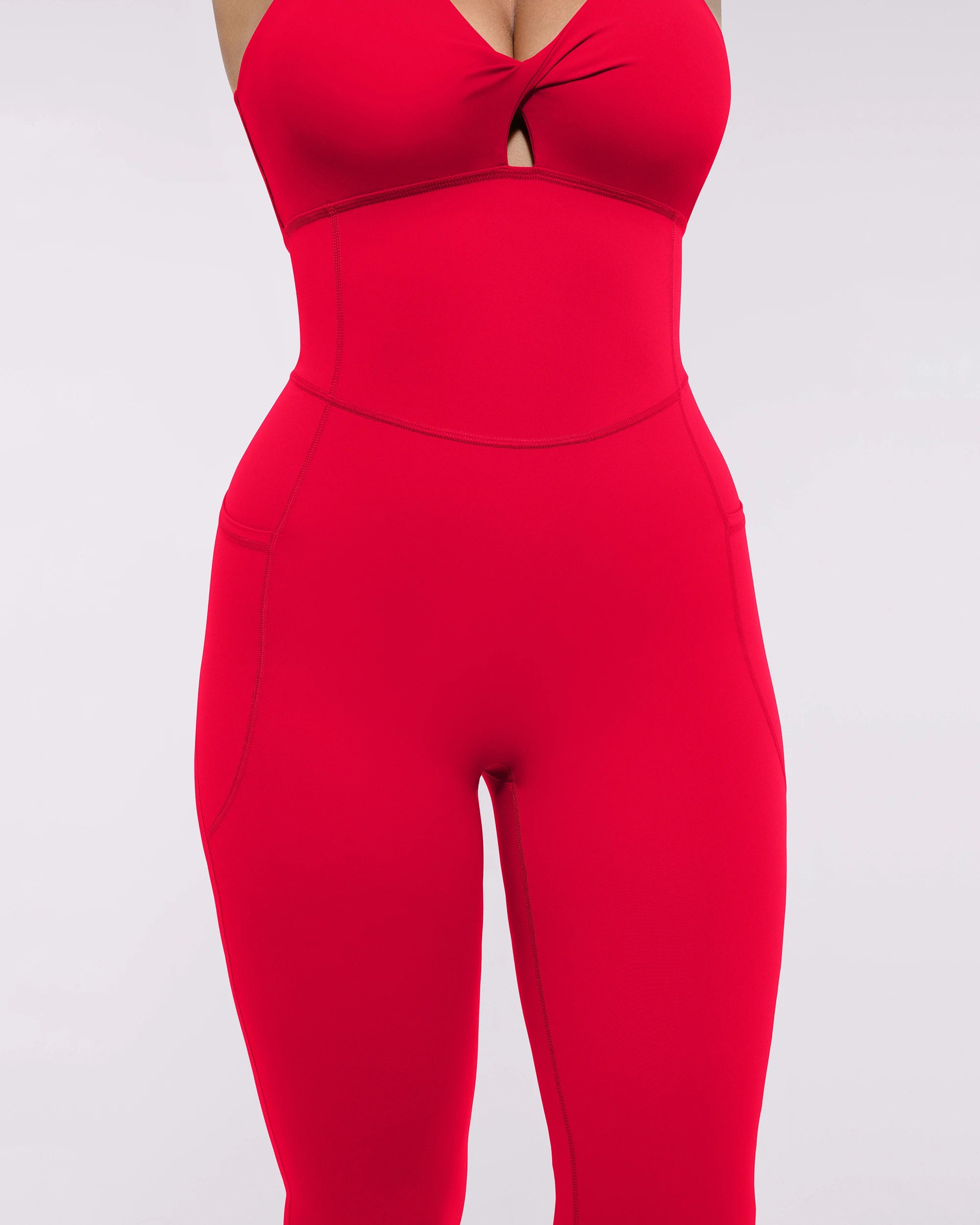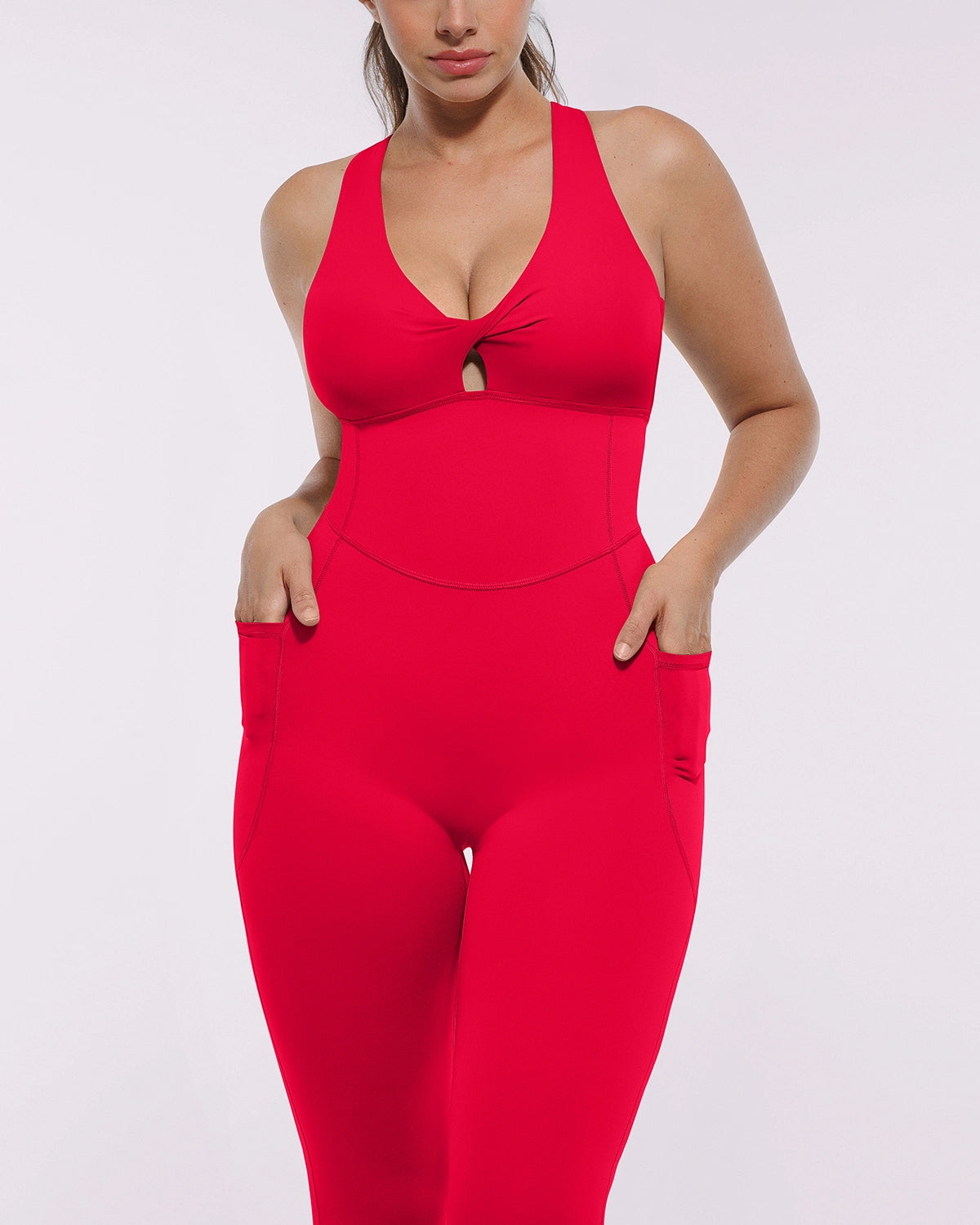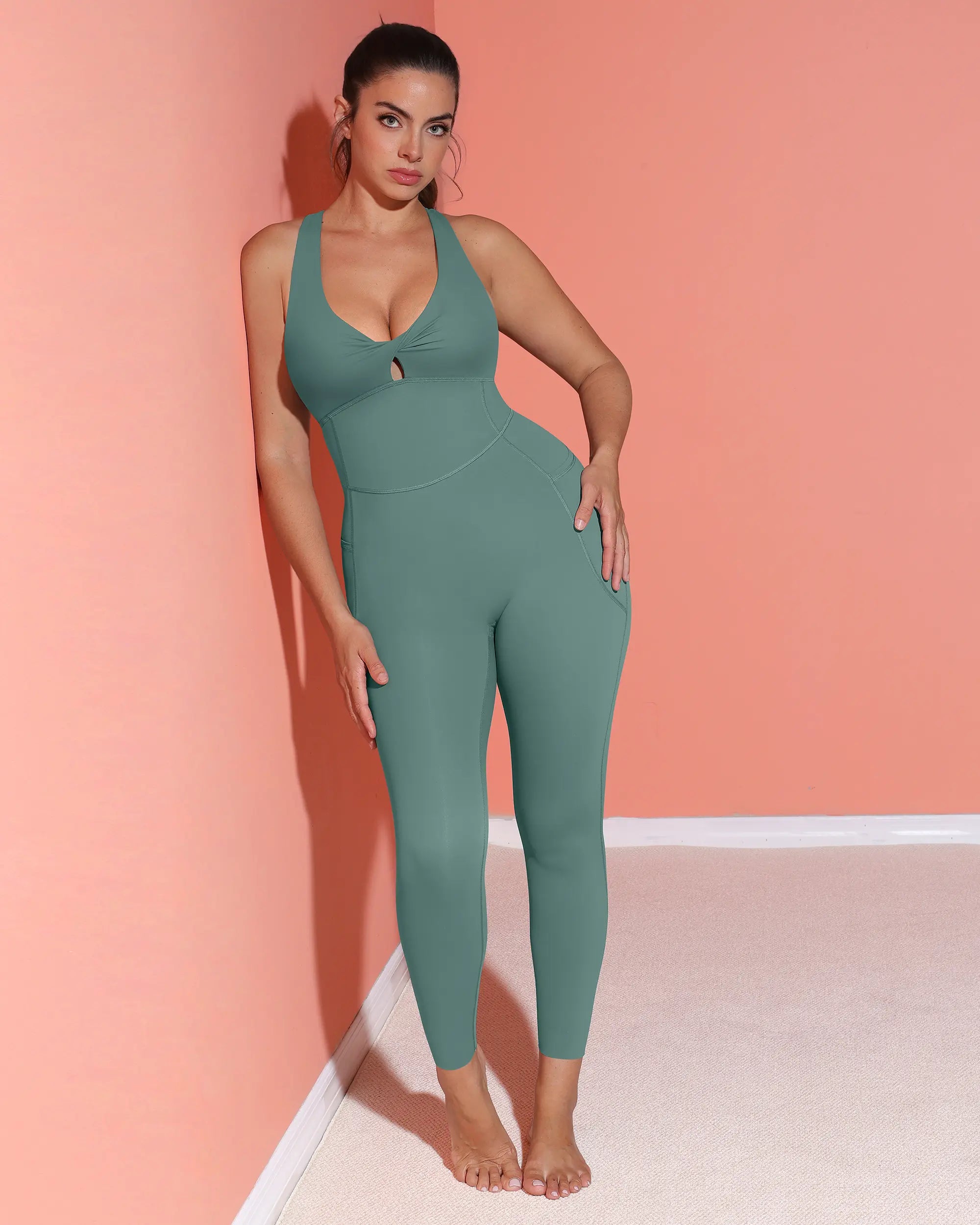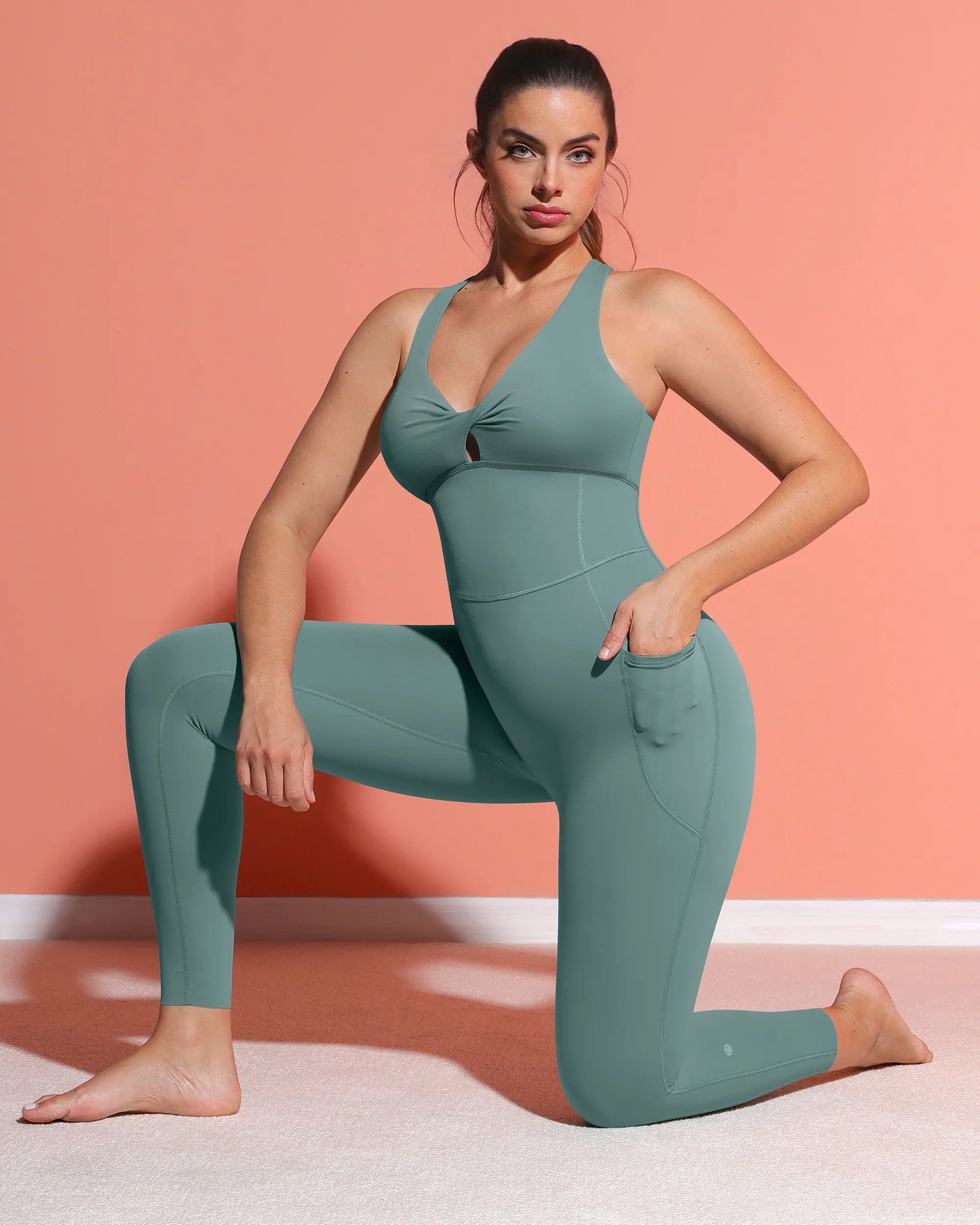 NeoSweat® AirSlim® Racerback Jumpsuit – a sleek, sculpting one-piece that flatters and performs. The stylish V-neck and racerback highlight your curves, while hidden pockets and removable cups add practical versatility. With adjustable hems and seamless comfort, it’s perfect for workouts or weekend wear.