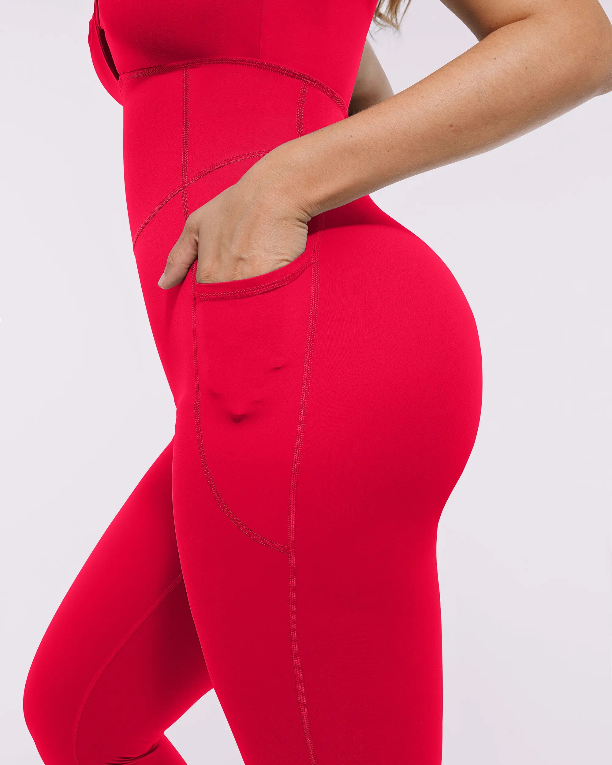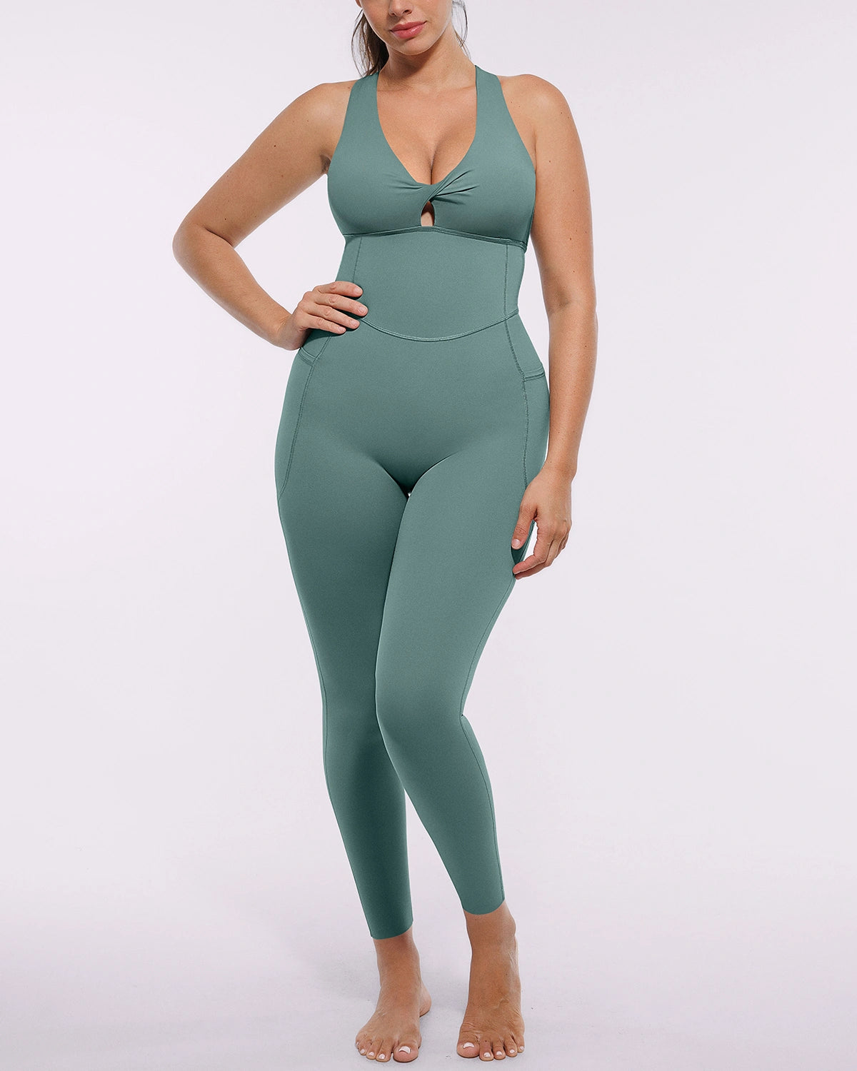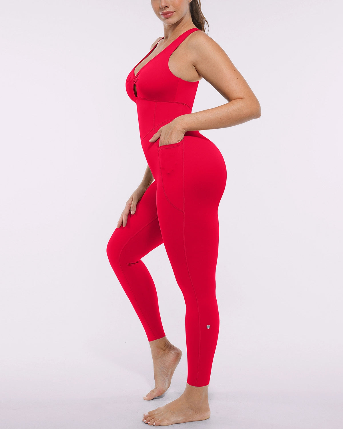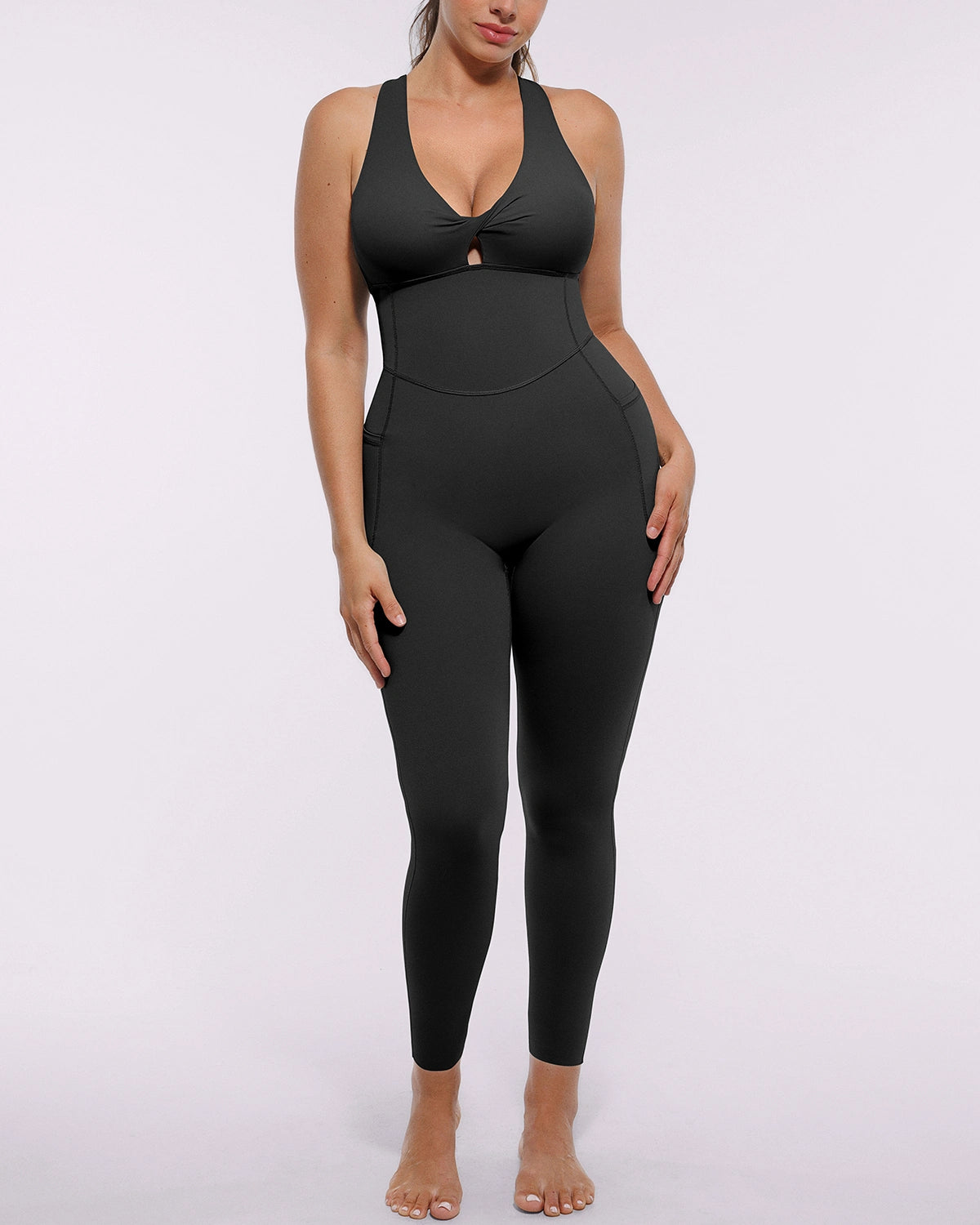 NeoSweat® AirSlim® Racerback Jumpsuit – a sleek, sculpting one-piece that flatters and performs. The stylish V-neck and racerback highlight your curves, while hidden pockets and removable cups add practical versatility. With adjustable hems and seamless comfort, it’s perfect for workouts or weekend wear.