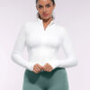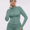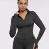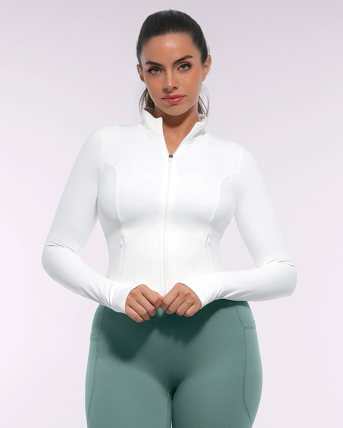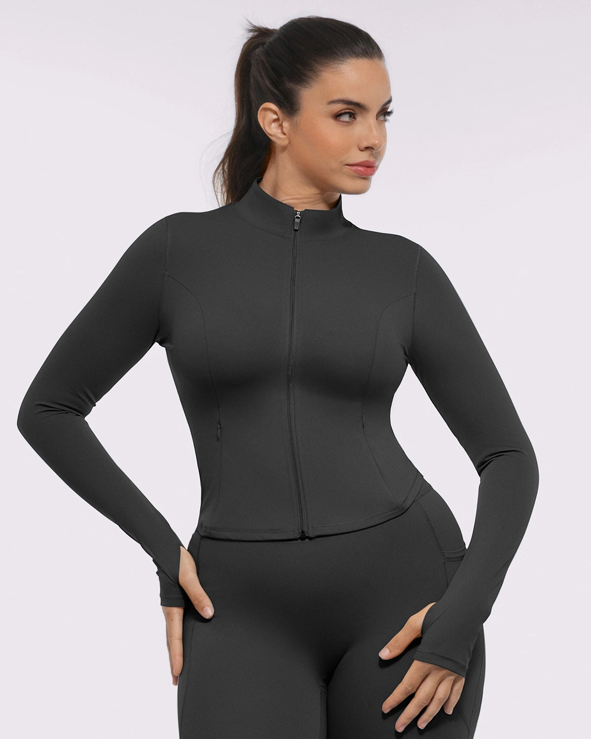 NeoSweat® AirSlim® Slim-Fit Zip Jacket – where performance meets effortless style. The sleek, curve-enhancing design features an adjustable full-length front zipper, hidden secure pockets, and thumbholes for unrestricted movement. Crafted with high-performance four-way stretch fabric and UPF protection, this jacket is your go-to layer for any workout.