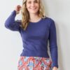 Crafted from soft cotton, this long-sleeve pointelle tee is the perfect match for our pajama pants. With a cutesy scalloped edge neckline and a snug fit, this pajama top is a cozy essential.