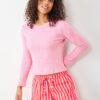 Crafted from soft cotton, this long-sleeve pointelle tee is the perfect match for our pajama pants. With a cutesy scalloped edge neckline and a snug fit, this pajama top is a cozy essential.