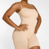 Expertly style any occasion with this essential and versatile piece in your wardrobe. With pique stitching that offers bust support, an open gusset, and removable adjustable straps that allow for cross-back or halter wear, it provides exceptional comfort and seamless body sculpting. Made with skin-friendly fabric, this body shaper is perfect for all-day wear.