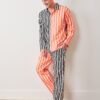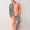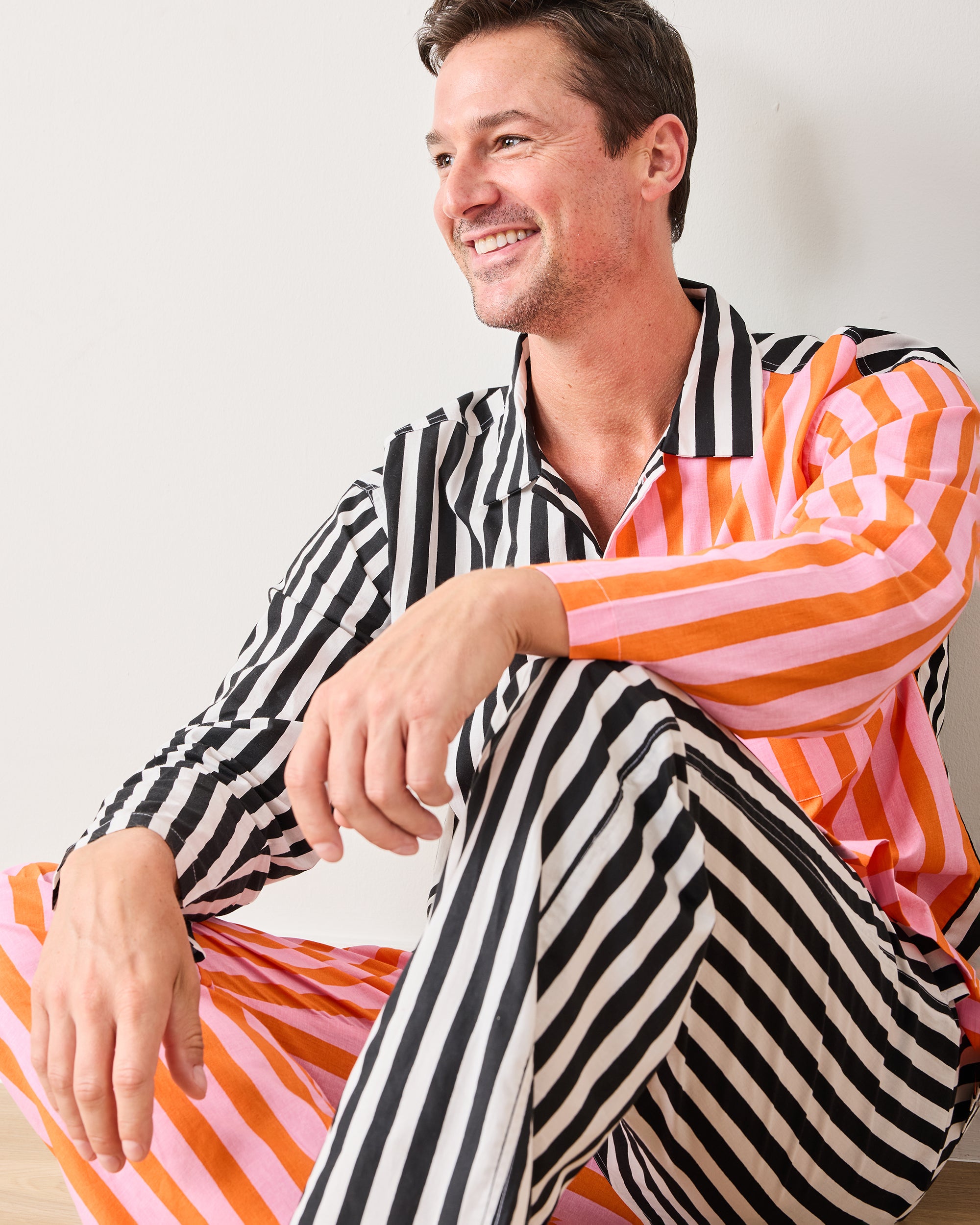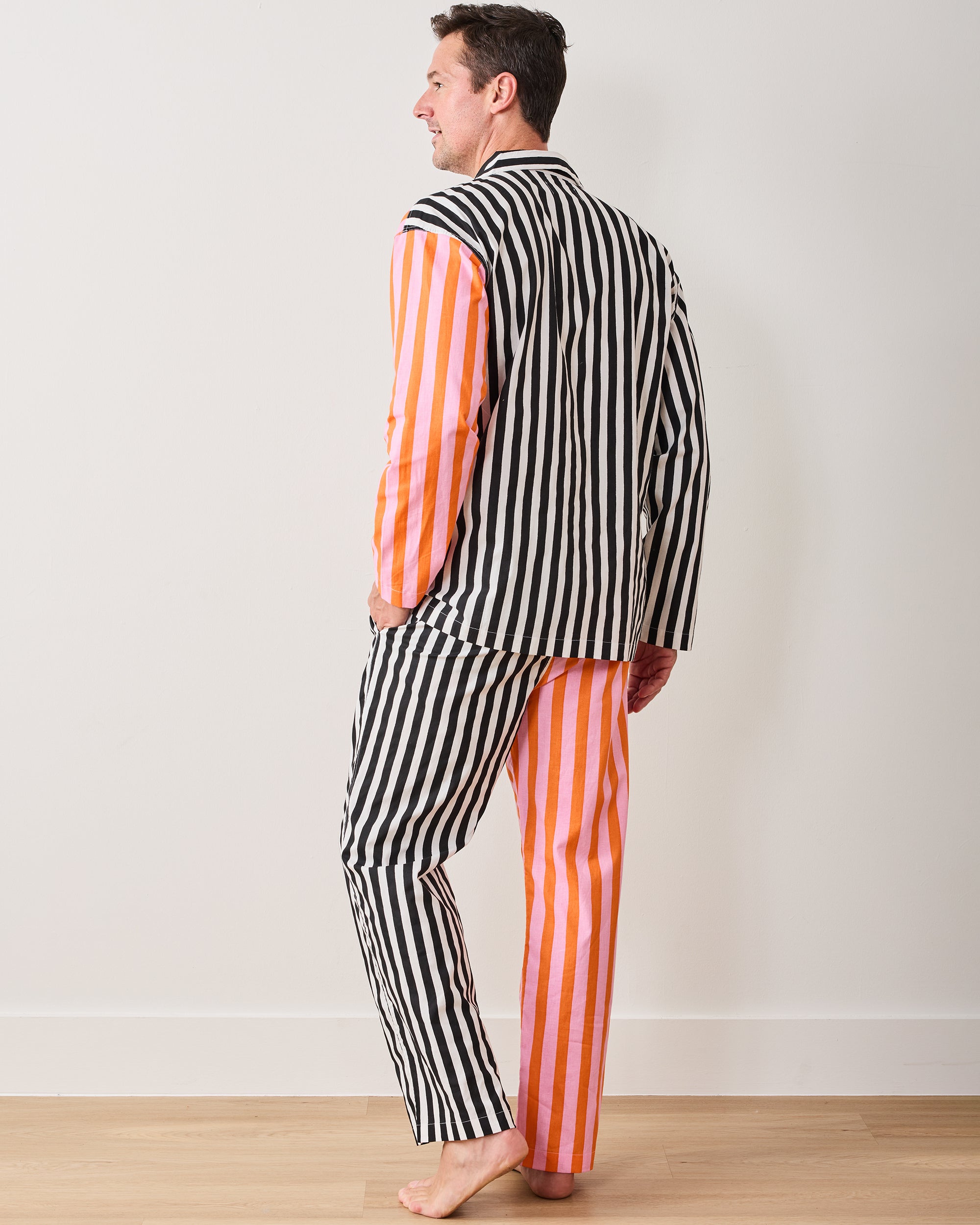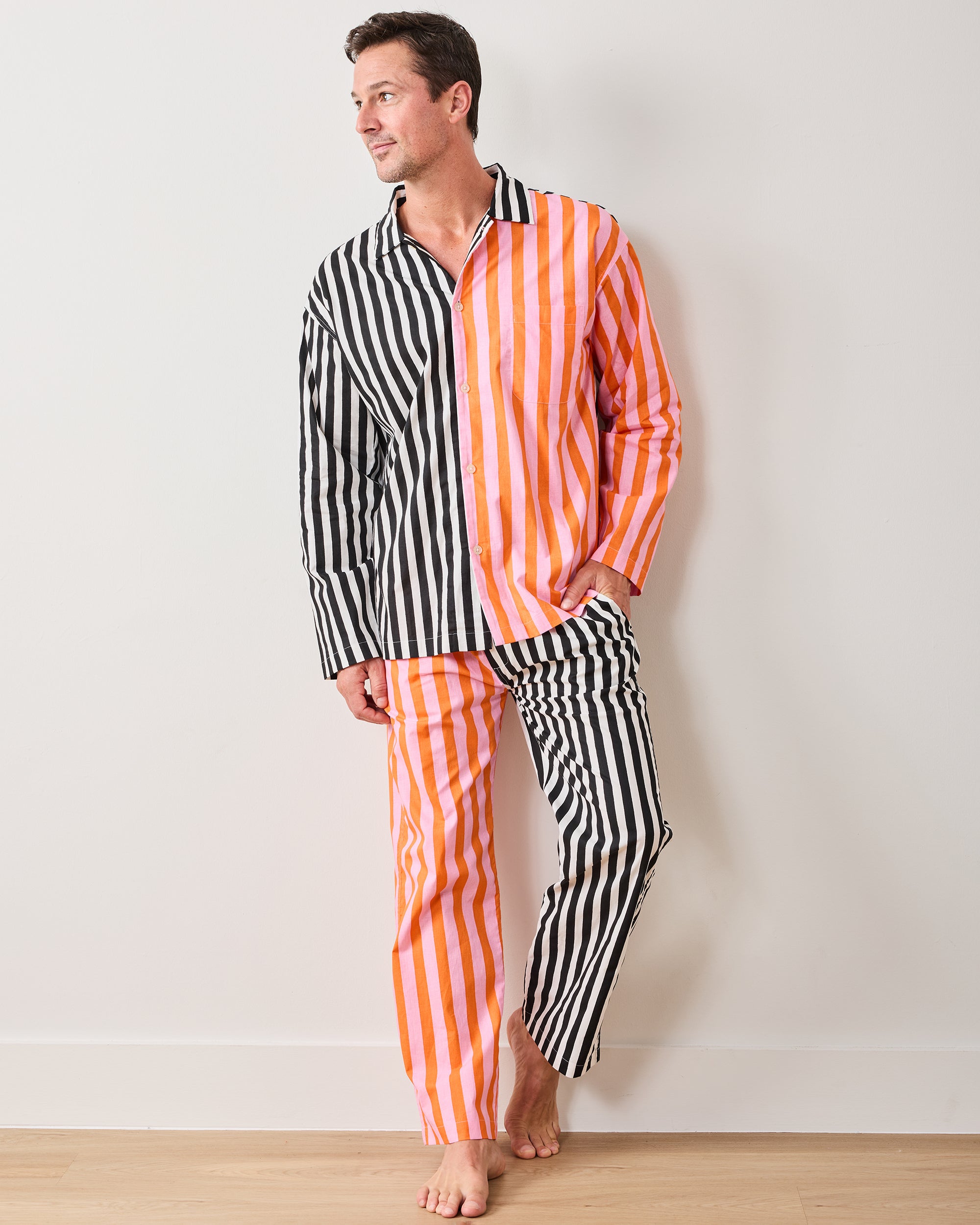 It’s showtime! This striped pajama set channels theatrical flair with split-color stripes in our vibrant Skeleton Candy hue. Breathable organic cotton keeps you comfortable while the Beetlejuice-inspired design adds personality to your nighttime routine. With a relaxed fit, roomy pockets, and classic button-down styling, this men’s PJ set is perfect for enjoying movie marathons in showstopping style.