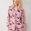 Playful pumpkins, charming crows, and cute skulls dance across our Sleepy Hollow Halloween pajama set in soft pink. This cotton PJ set combines festive autumn motifs with breathable organic cotton for October nights that feel magical. This button-down sleepwear features a relaxed-fit top and comfortable pants with pockets, perfect for cozy evenings in.