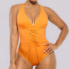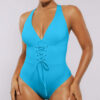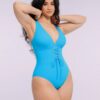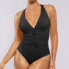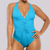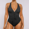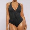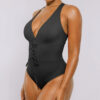 Meet our Smart Sculpt™ Plunge Corset Shaping Swimsuit! Featuring a stylish lace-up waist and power mesh lining, it offers a customizable fit with effective tummy control. The wide straps and cross-back design stand out while ensuring comfort. With generous bottom coverage and removable cups, this swimsuit perfectly blends fashion and practicality.