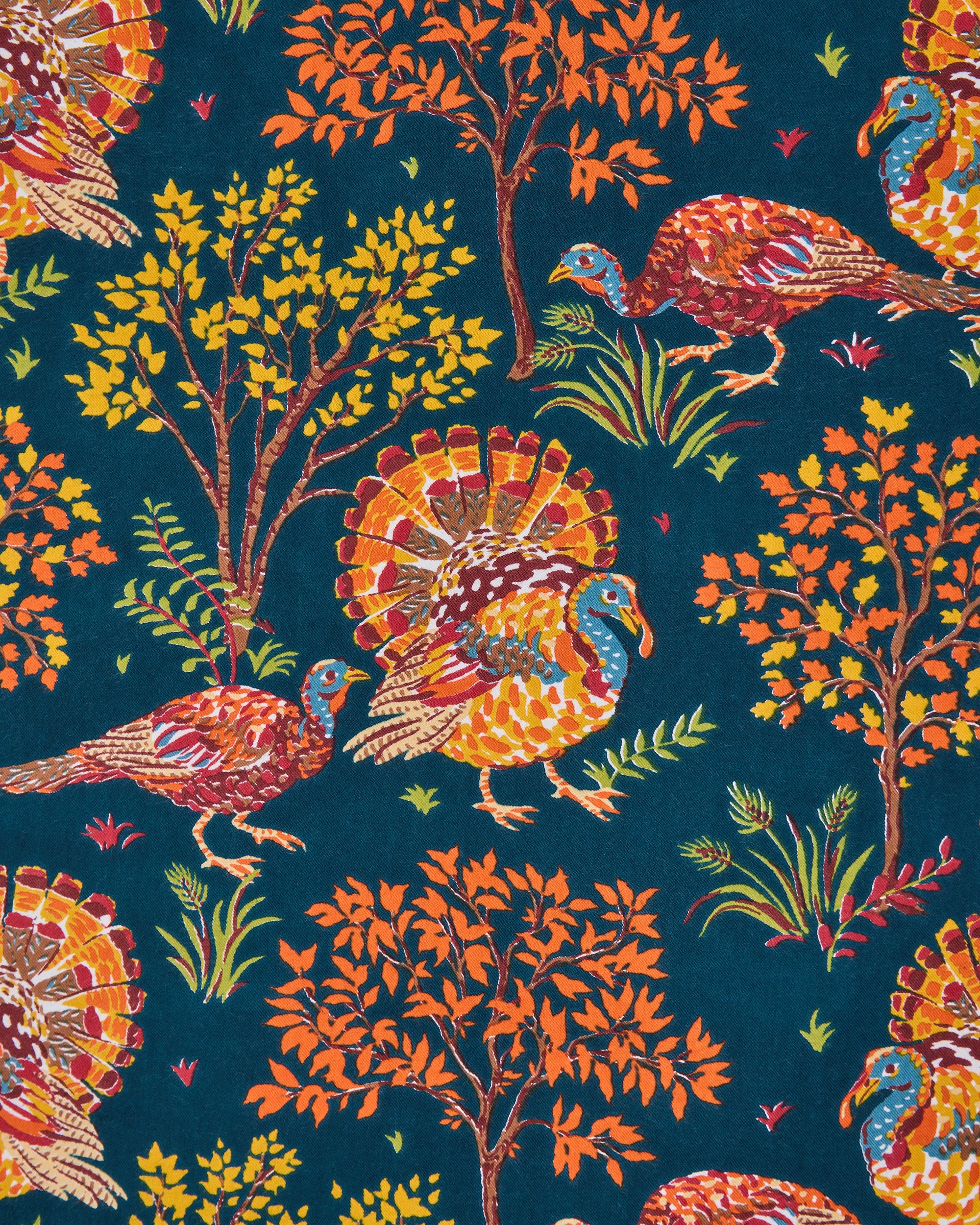 Celebrate the season with our Turkey Trot men’s long sleep pants in midnight navy. This turkey print sleepwear features colorful gobblers wandering through autumn leaves on cozy yet breathable flannel. The relaxed fit of these men’s pajama pants makes this navy loungewear perfect for post-feast lounging or crisp fall mornings. Shop more , , and .